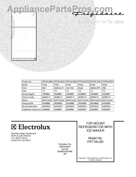 Parts for Frigidaire FRT18IL6DKH: 01 - Cover Parts