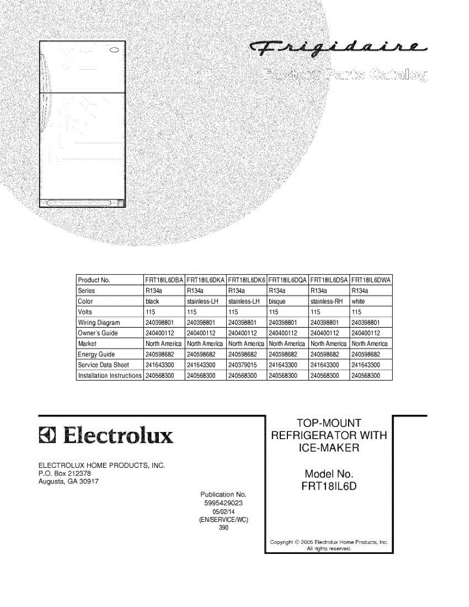 Parts for Frigidaire FRT18IL6DWA: 01 - Cover Parts