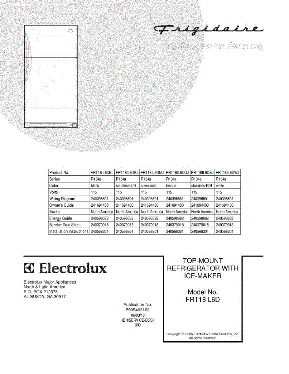 Parts for Frigidaire FRT18IL6DWJ: 01 - Cover Parts