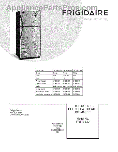 Parts for Frigidaire FRT18IL6JB8: 01 - Cover Parts