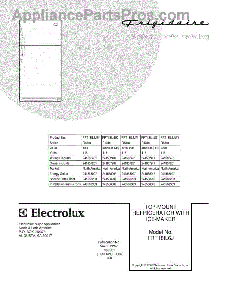 Parts for Frigidaire FRT18IL6JW1: 01 - Cover Parts