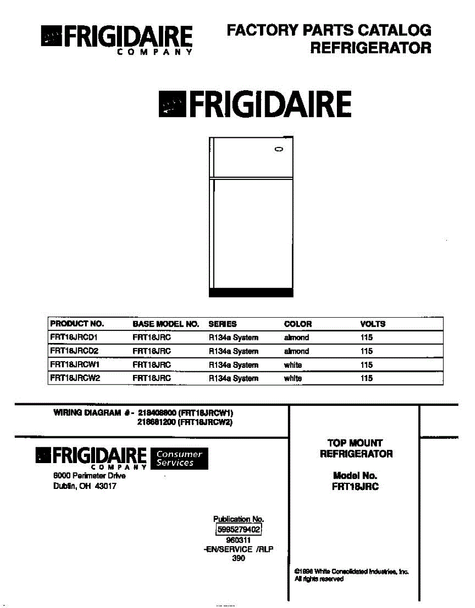 Parts for Frigidaire FRT18JRCW1: 01 - Cover Parts