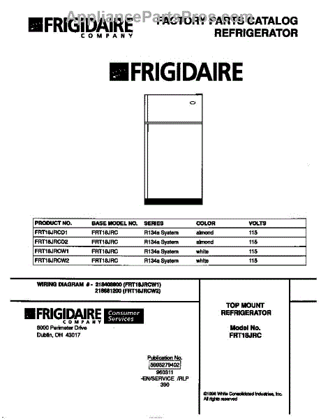 Parts for Frigidaire FRT18JRCW2: 01 - Cover Parts