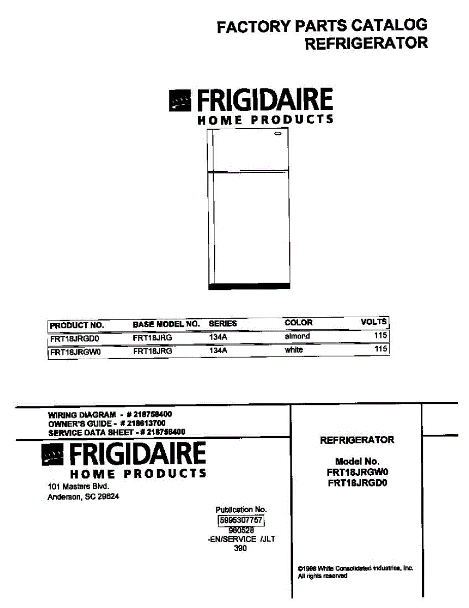 Parts for Frigidaire FRT18JRGD0: 01 - Cover Parts