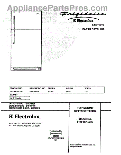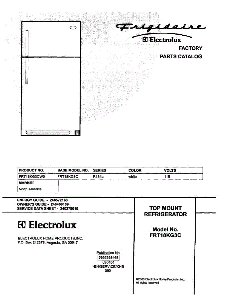 Parts for Frigidaire FRT18KG3CW0: 01 - Cover Parts