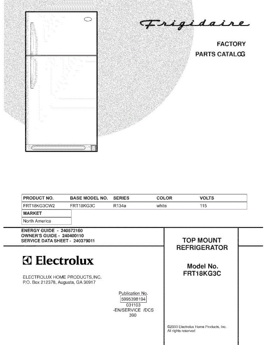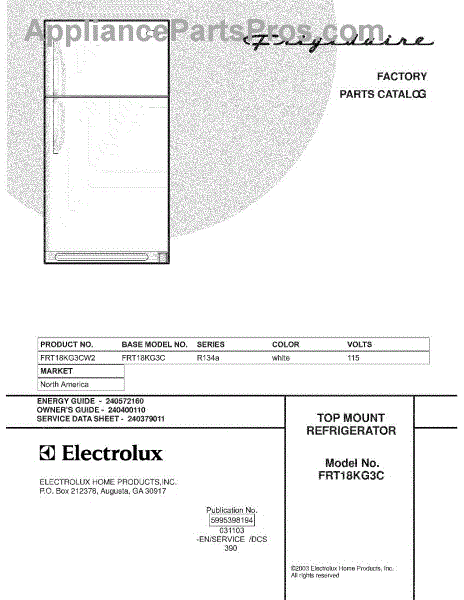 Parts for Frigidaire FRT18KG3CW2: 01 - Cover Parts