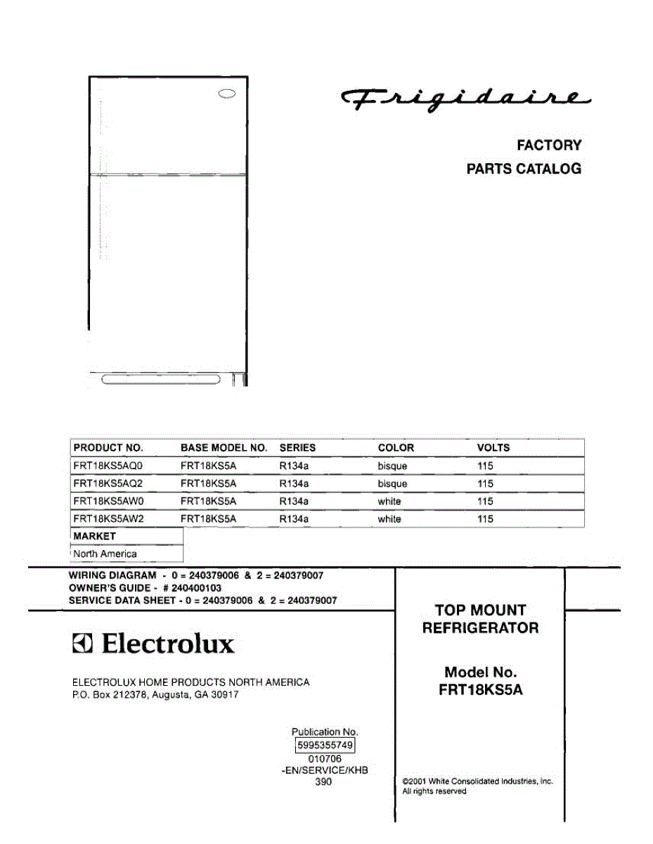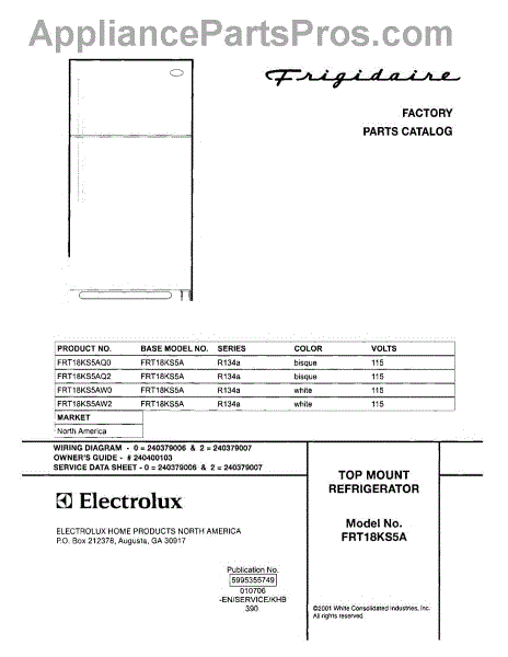 Parts for Frigidaire FRT18KS5AW0: 01 - Cover Parts