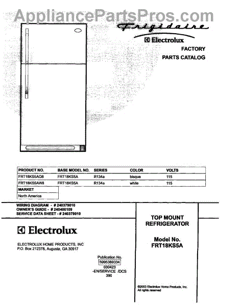 Parts for Frigidaire FRT18KS5AW8: 01 - Cover Parts