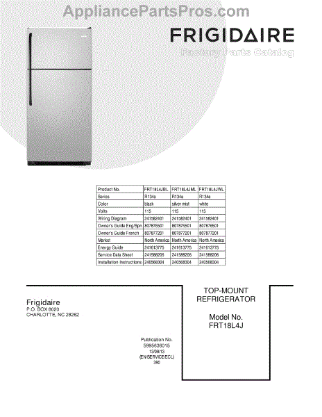 Parts for Frigidaire FRT18L4JBL: 01 - Cover Parts