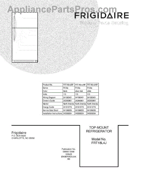 Parts for Frigidaire FRT18L4JWF: 01 - Cover Parts