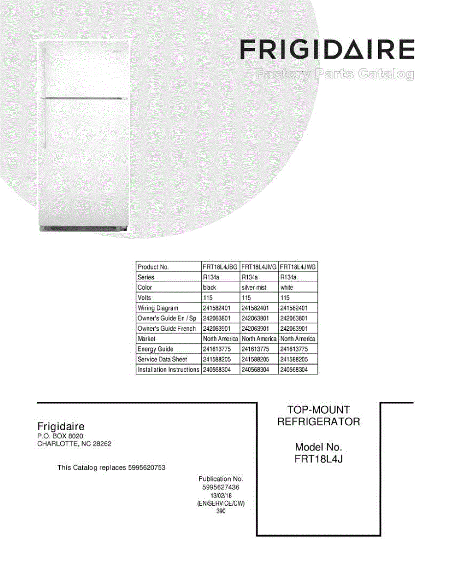 Parts for Frigidaire FRT18L4JWG: 01 - Cover Parts