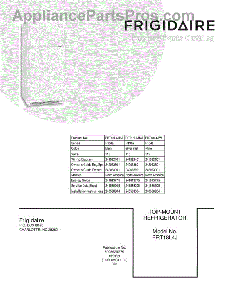Parts for Frigidaire FRT18L4JWJ: 01 - Cover Parts