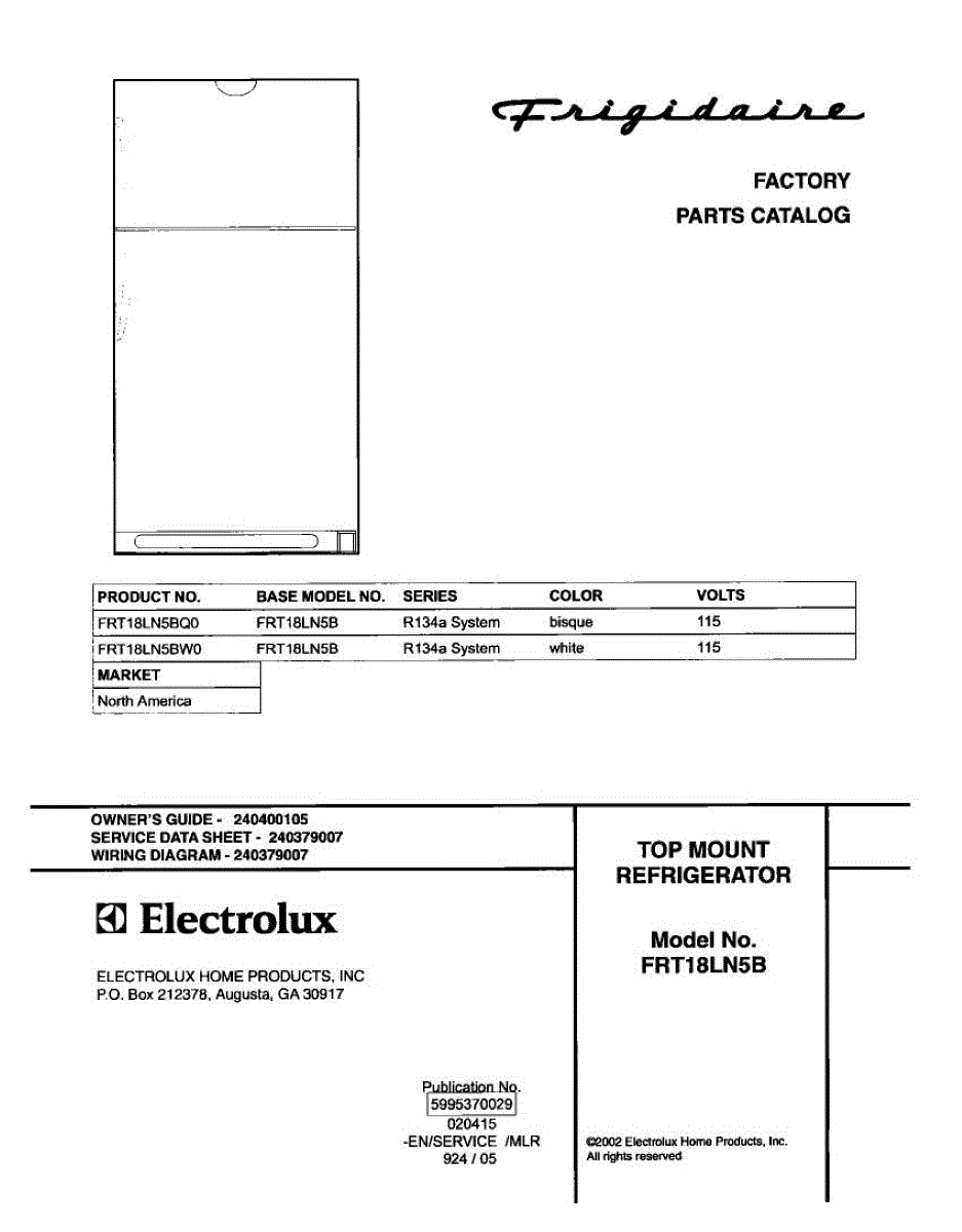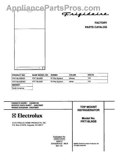 Parts for Frigidaire FRT18LN5BQ0: 01 - Cover Parts