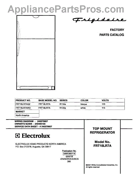 Parts for Frigidaire FRT18LR7AQ2: 01 - Cover Parts