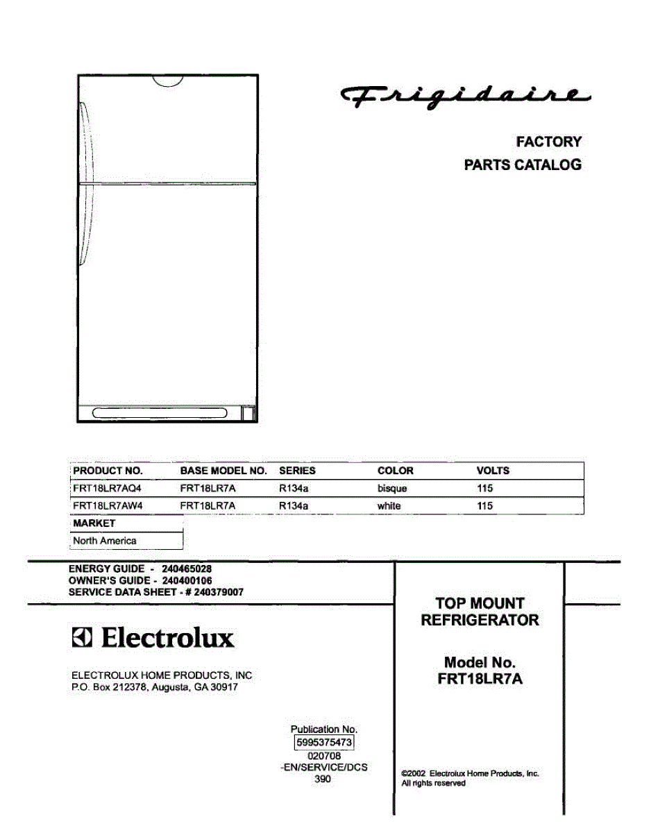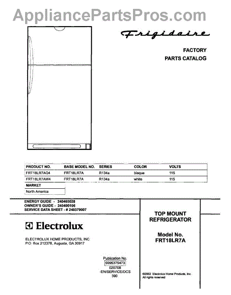Parts for Frigidaire FRT18LR7AQ4: 01 - Cover Parts