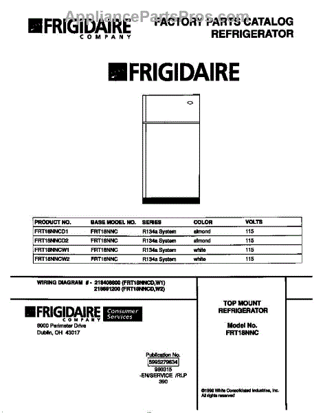 Parts for Frigidaire FRT18NNCD1: 01 - Cover Parts