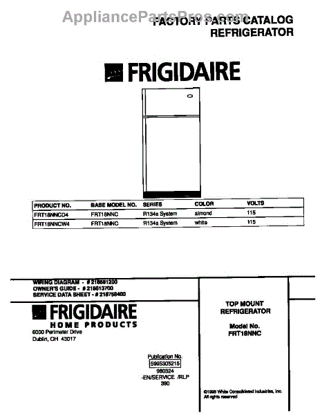 Parts for Frigidaire FRT18NNCW4: 01 - Cover Parts