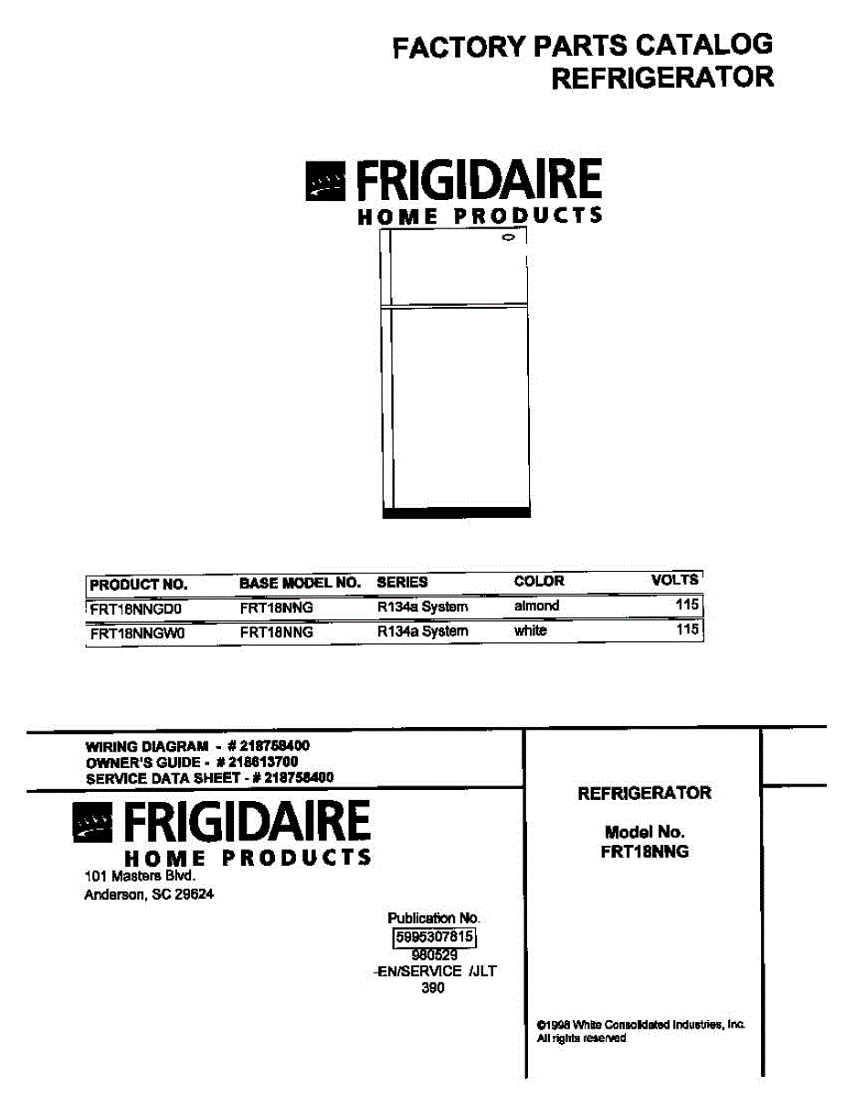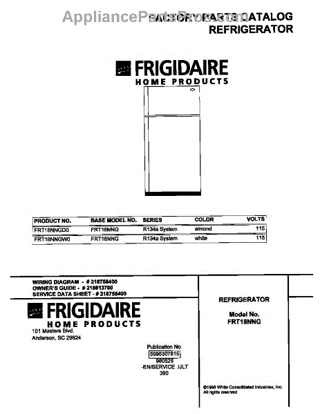 Parts for Frigidaire FRT18NNGW0: 01 - Cover Parts