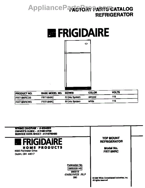 Parts for Frigidaire FRT18NRCW3: 01 - Cover Parts