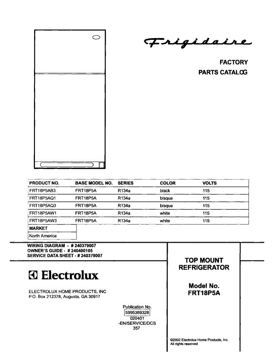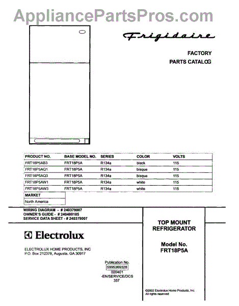 Parts for Frigidaire FRT18P5AQ1: 01 - Cover Parts