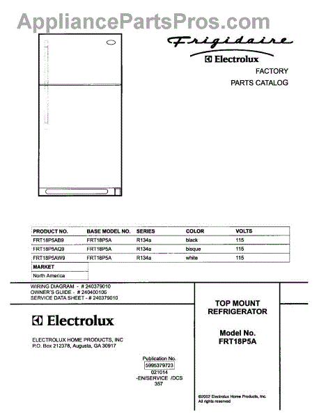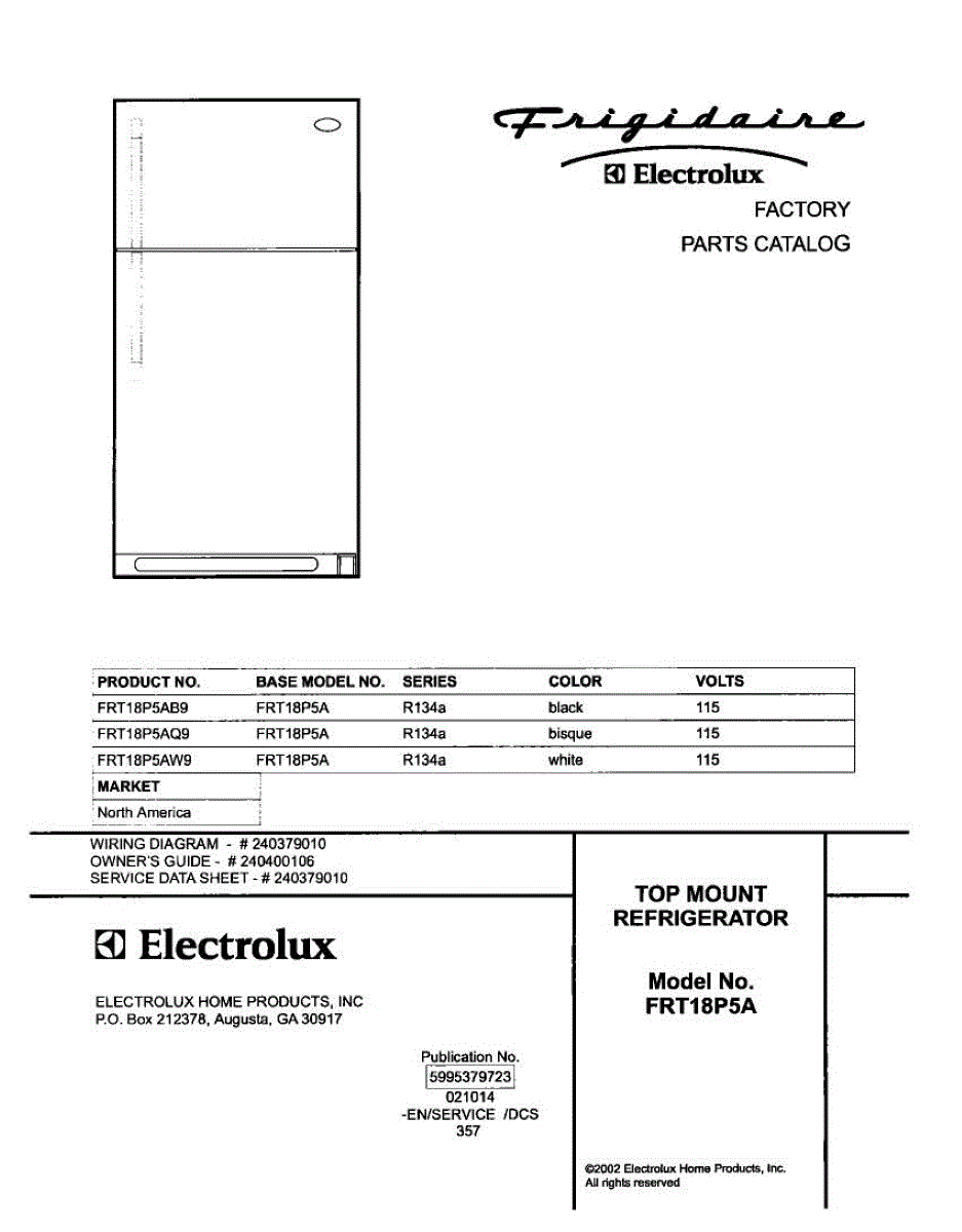 Parts for Frigidaire FRT18P5AQ9: 01 - Cover Parts