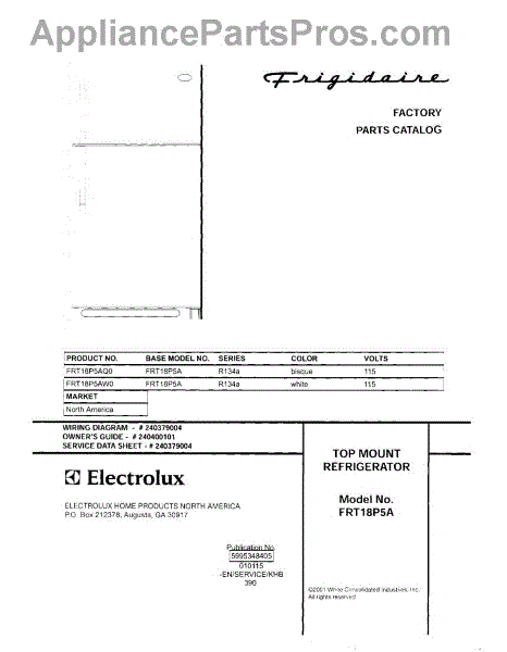 Parts for Frigidaire FRT18P5AW0: 01 - Cover Parts