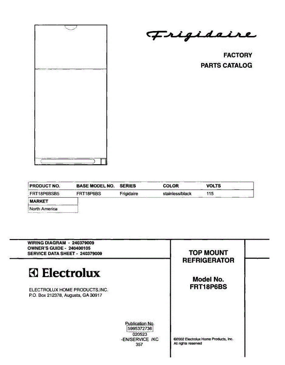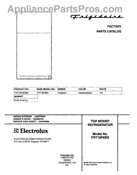 Parts for Frigidaire FRT18P6BSB5: 01 - Cover Parts