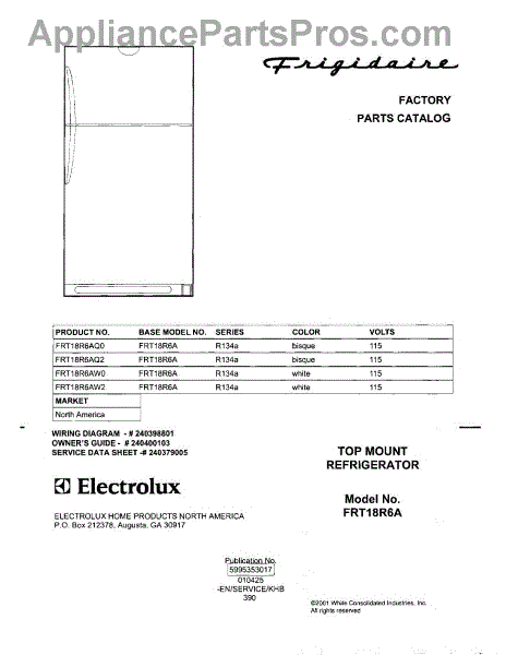 Parts for Frigidaire FRT18R6AQ2: 01 - Cover Parts