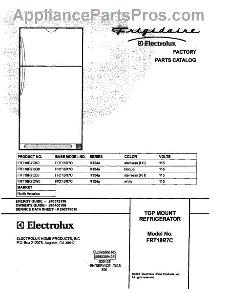 Parts for Frigidaire FRT18R7CS0: 01 - Cover Parts