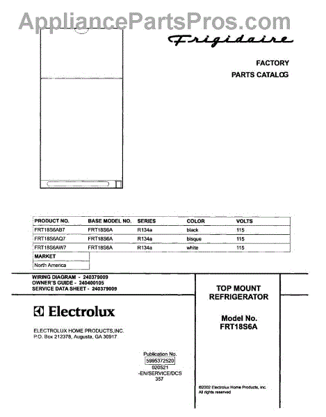 Parts for Frigidaire FRT18S6AB7: 01 - Cover Parts