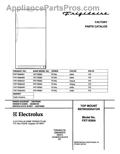 Parts for Frigidaire FRT18S6AQ1: 01 - Cover Parts