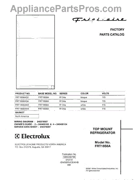 Parts for Frigidaire FRT18S6AW2: 01 - Cover Parts