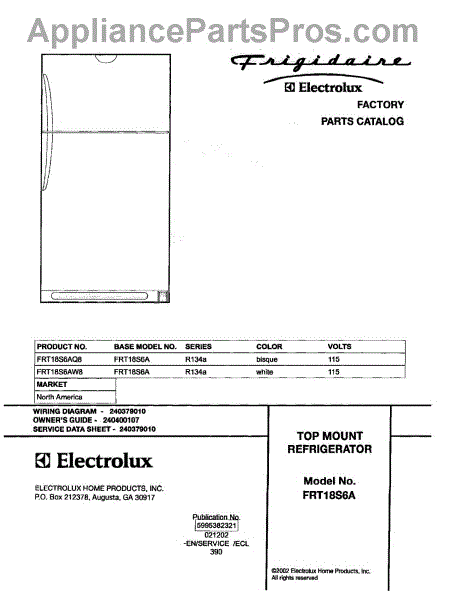 Parts for Frigidaire FRT18S6AW8: 01 - Cover Parts