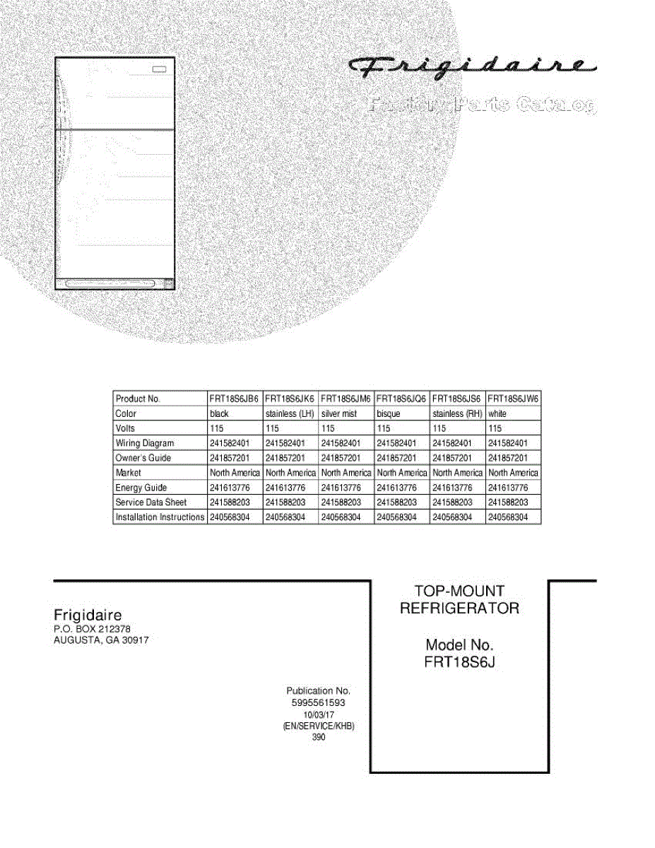 Parts for Frigidaire FRT18S6JK6: 01 - Cover Parts