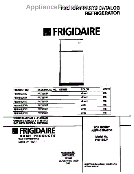 Parts for Frigidaire FRT18SJFD1: 01 - Cover Parts