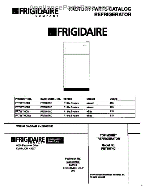 Parts for Frigidaire FRT18TNCW1: 01 - Cover Parts