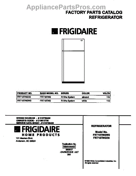 Parts for Frigidaire FRT18TNGD0: 01 - Cover Parts