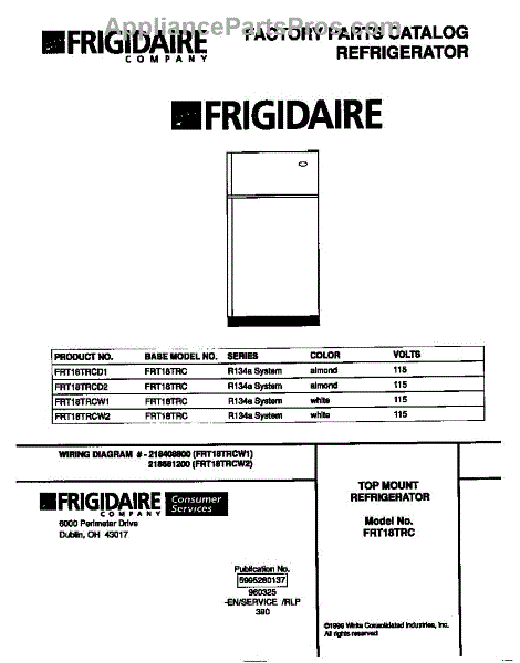 Parts for Frigidaire FRT18TRCW1: 01 - Cover Parts