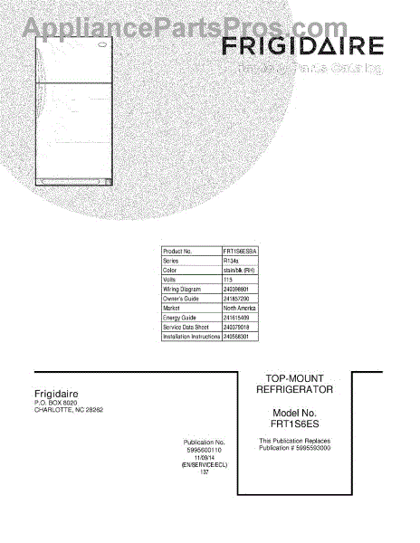 Parts for Frigidaire FRT1S6ESBA: 01 - Cover Parts