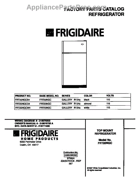 Parts for Frigidaire FRT20NGCB4: 01 - Cover Parts