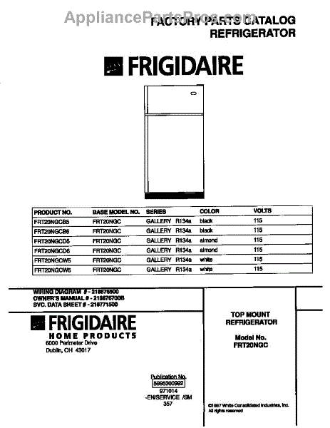 Parts for Frigidaire FRT20NGCB5: 01 - Cover Parts