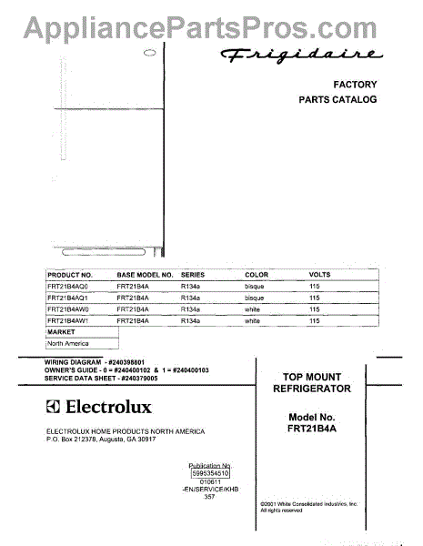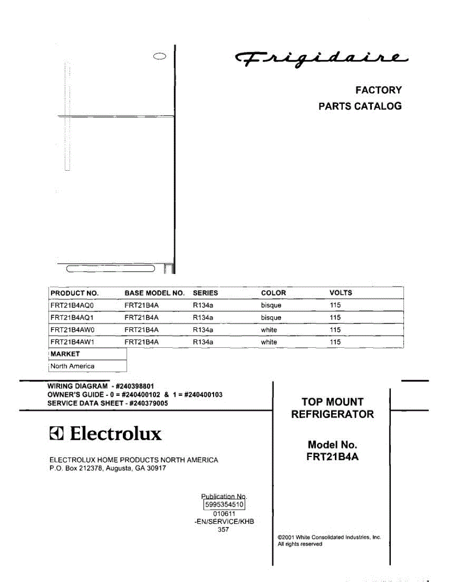 Parts for Frigidaire FRT21B4AQ1: 01 - Cover Parts