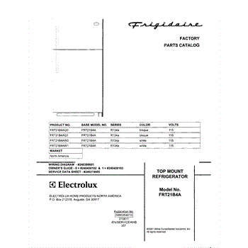 Parts for Frigidaire FRT21B4AW1: 01 - Cover Parts
