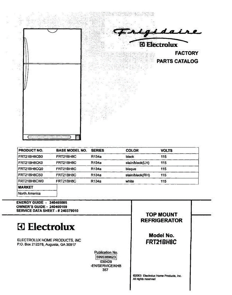 Parts for Frigidaire FRT21BH8CK0: 01 - Cover Parts