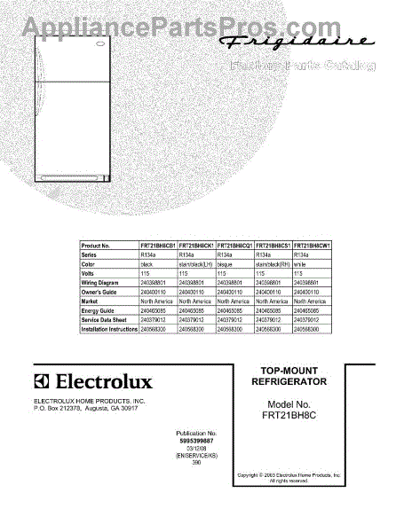 Parts for Frigidaire FRT21BH8CQ1: 01 - Cover Parts