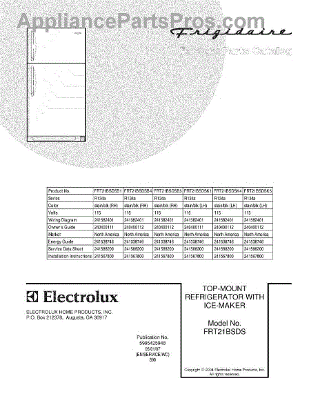 Parts for Frigidaire FRT21BSDSB4: 01 - Cover Parts