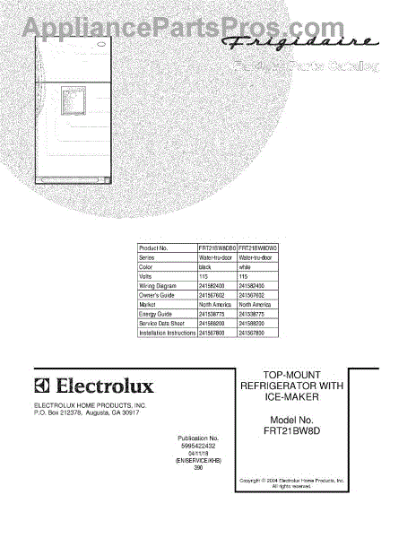 Parts for Frigidaire FRT21BW8DB0: 01 - Cover Parts