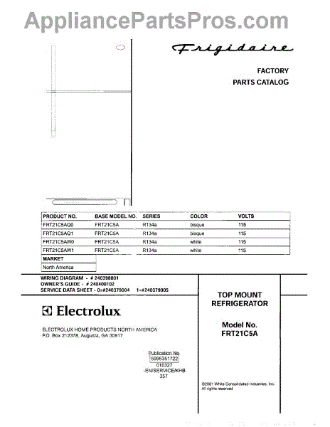 Parts for Frigidaire FRT21C5AW0: 01 - Cover Parts