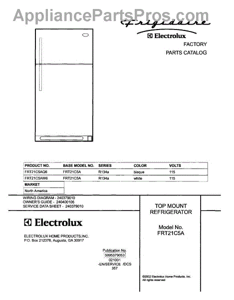 Parts for Frigidaire FRT21C5AW6: 01 - Cover Parts