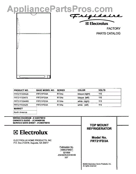 Parts for Frigidaire FRT21FD3AQ5: 01 - Cover Parts